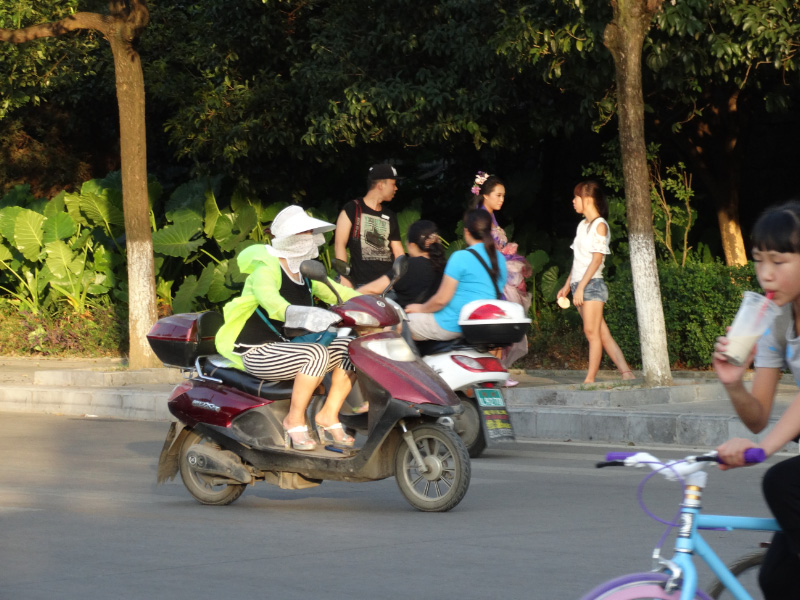 One of the first things we noticed was the lack of noise on the roads. They were busy and the majority of vehicles were scooters, or as they called them e-bikes. Quiet. They came in many shapes and sizes, 2-wheel, 3-wheel and even 4-wheel with extra seats or trailers and a variety of umbrellas to provide protection from rain and sun.