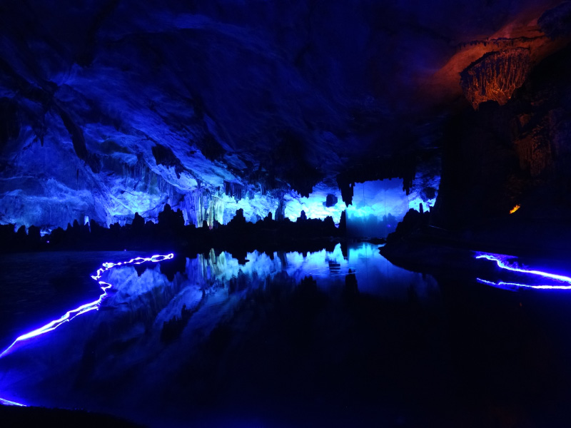 Our first tourist stop was the Reed Flute Cave, beautiful caves inside the limestone caste mountains with amazing lighting effects. John, our guide took great delight pointing out lions and snails and Santa in the rock formations.