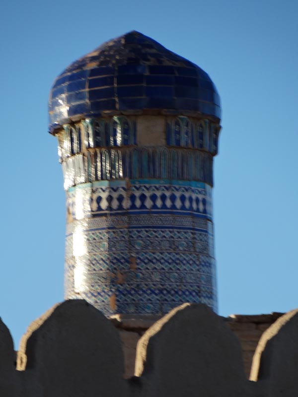 The Kalta Minor minaret is unfinished. Built by Mohammed Amin Khan who wanted to see Bukhara from it. Unfortunately the Khan dropped dead in 1855 and legend has it that his successor never finished it, fearing it would overlook his harem.