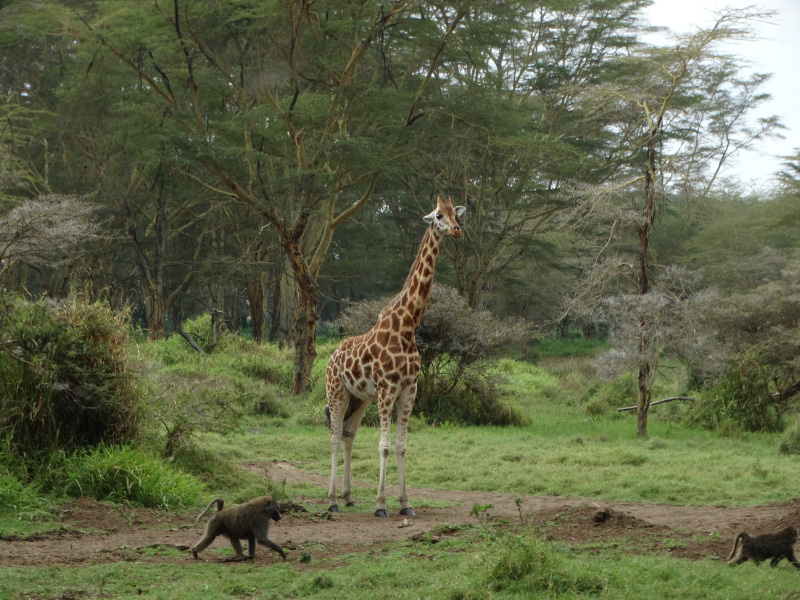 We drove up to the Baboon Lookout for a magical view of the misty Lake Nakuru. No baboons here, although we later saw many mobs of them. But there was a small mammal which Mwesdwe identified as a rock hyrax also known in South Africa as a dassie. I couldn’t help but Google this animal. Although small, only 6kg and rotund, it’s closest living relatives are modern day elephants and sirenians (sea cows such as dugongs).
