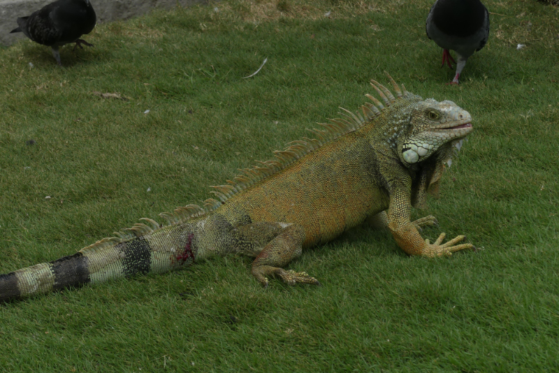 We had checked into the Hotel Continental in Guayquil. There is a park opposite called Parque Seminario which is home to hundreds of iguanas. A lady had come to feed them lettuce – it seemed like a regular occurrence as they were queuing up to get their treats. It was late in the day and the iguanas were settling into the trees for the night. A small pond was equally alive with fish and turtles – being fed.