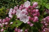 We were touring the Blue Ridge Parkway. There were orange azaleas, mauve to pink rhododendrons, pink to white laurel, yellow wild flowers, dark green firs and the lovely spring green of the deciduous trees with sprinkles of white flowers in the understory. It was a constant feast for the eyes.